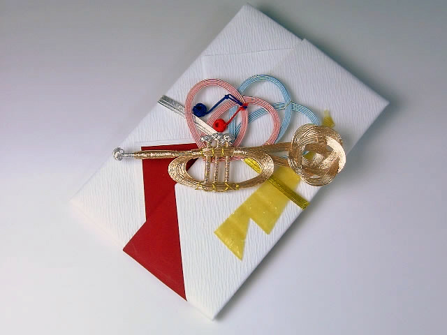 トランペットの珍しい祝儀袋。結婚祝いや、音楽が好きな方への御祝などに。トランペットに、ハートや音符が付いています。